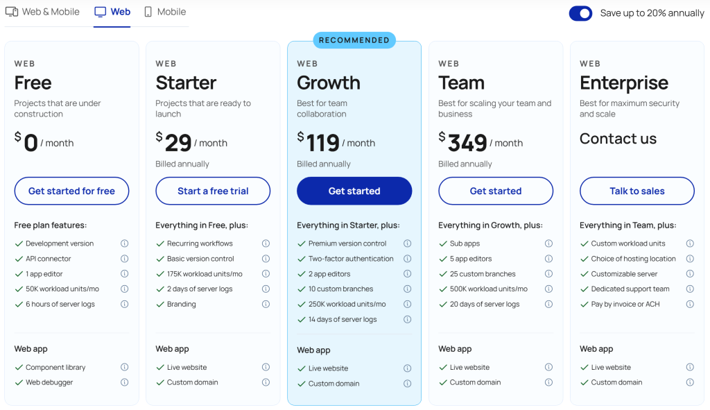Bubble’s plans suit indie devs to teams building crypto MVPs.