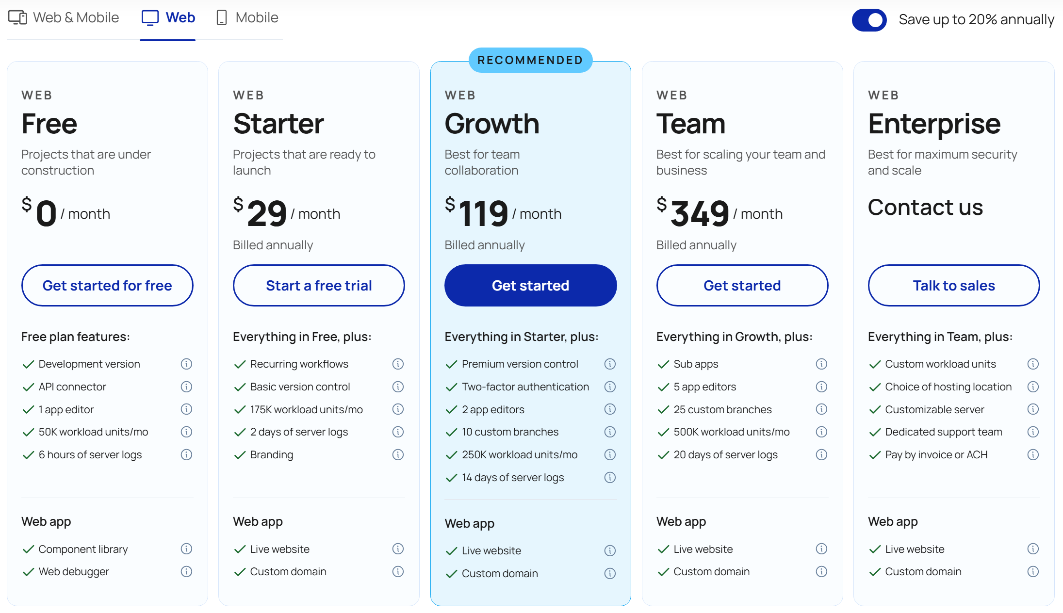 | Starter | $29 | 175k | Custom domains, 1 editor |